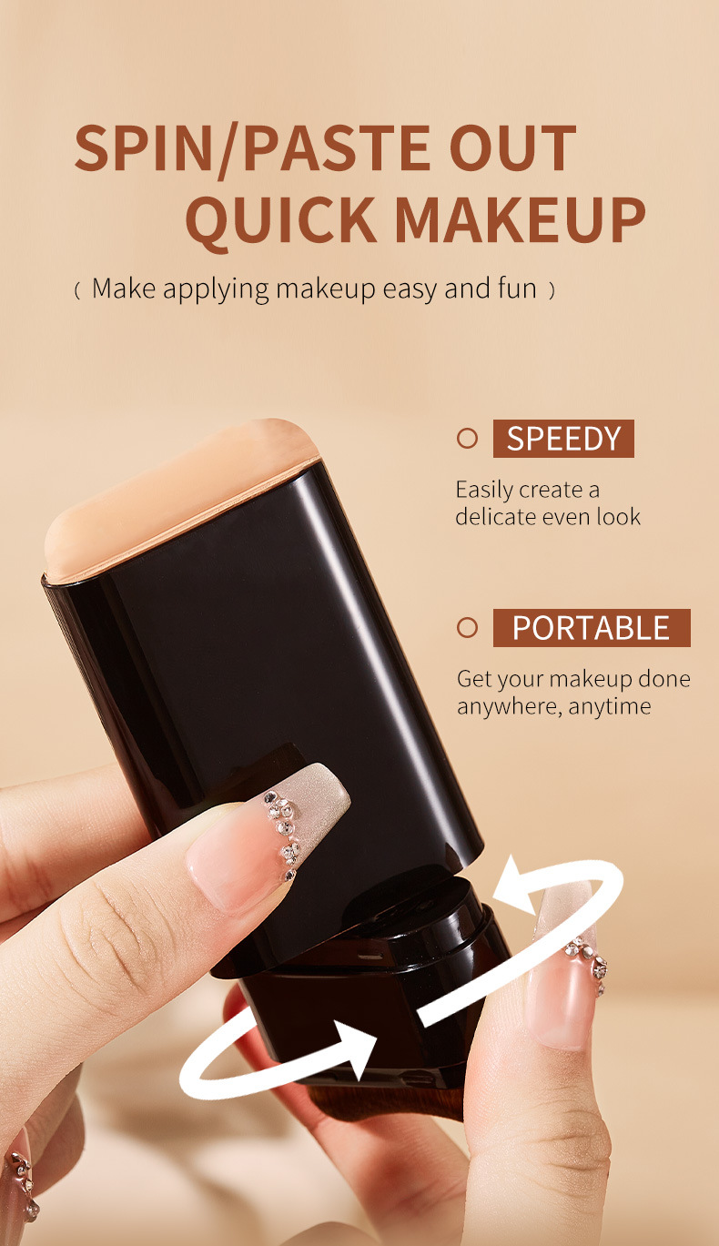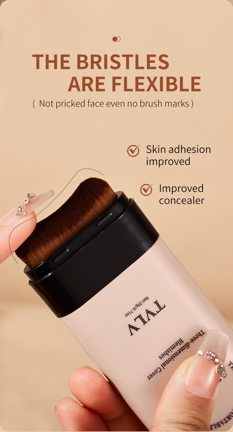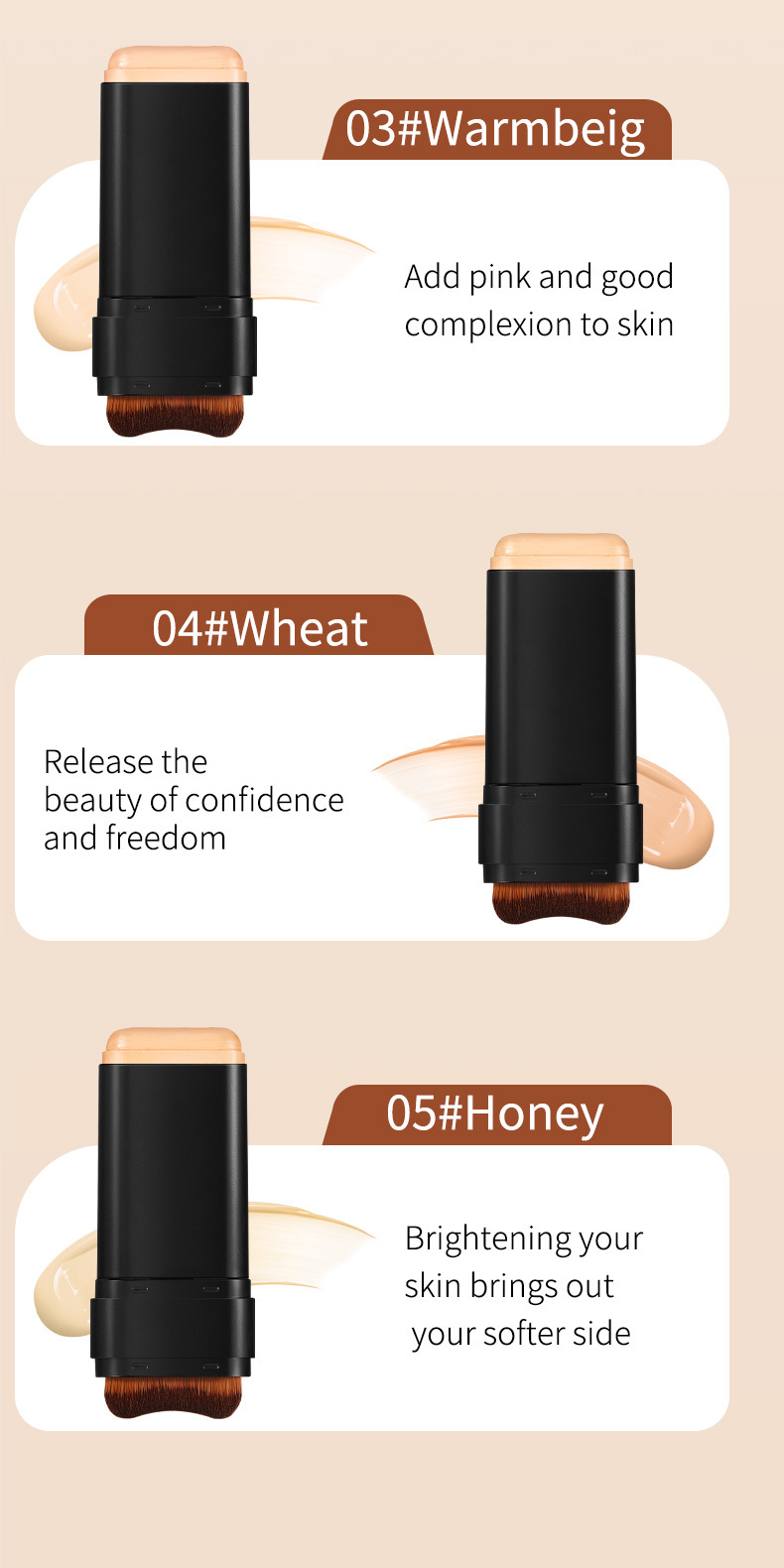 BelleCarved double-ended foundation stick adopts an innovative design, one end is a nourishing and moisturizing foundation, and the other end is a soft brush, which can easily achieve precise blemish coverage. Whether it is partial blemishes or full-face makeup, it can be quickly done to meet your needs for delicate makeup!