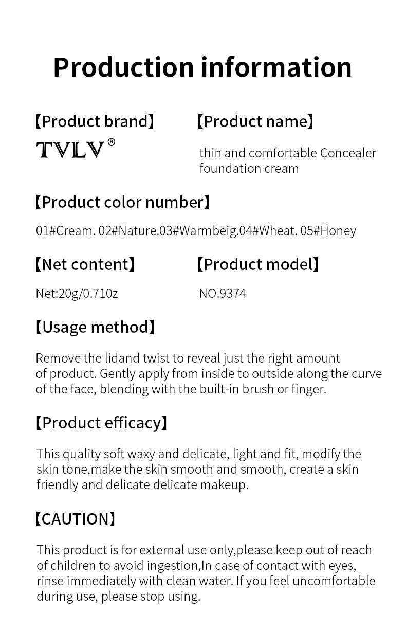 Provide 5 natural color numbers to meet the needs of different skin colors, and easily find your perfect match. Whether it is brightening the skin or concealing the face, it can be easily achieved.