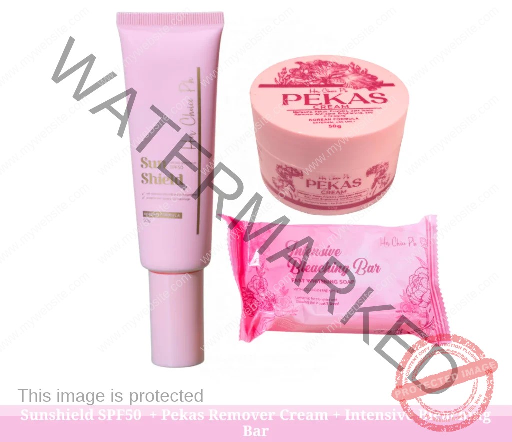Introducing the Pekas Remover Bundle Set, a meticulously curated collection designed to combat Pekas (melasma), uneven skin tone, and hyperpigmentation. This comprehensive set includes our renowned Pekas Remover Cream, Premium Tinted Sunshield, and Intensive Bleaching Bar Soap, each formulated with potent ingredients to offer a targeted approach to skin lightening and protection. Embrace the confidence of even, radiant skin with our saver’s bundle.