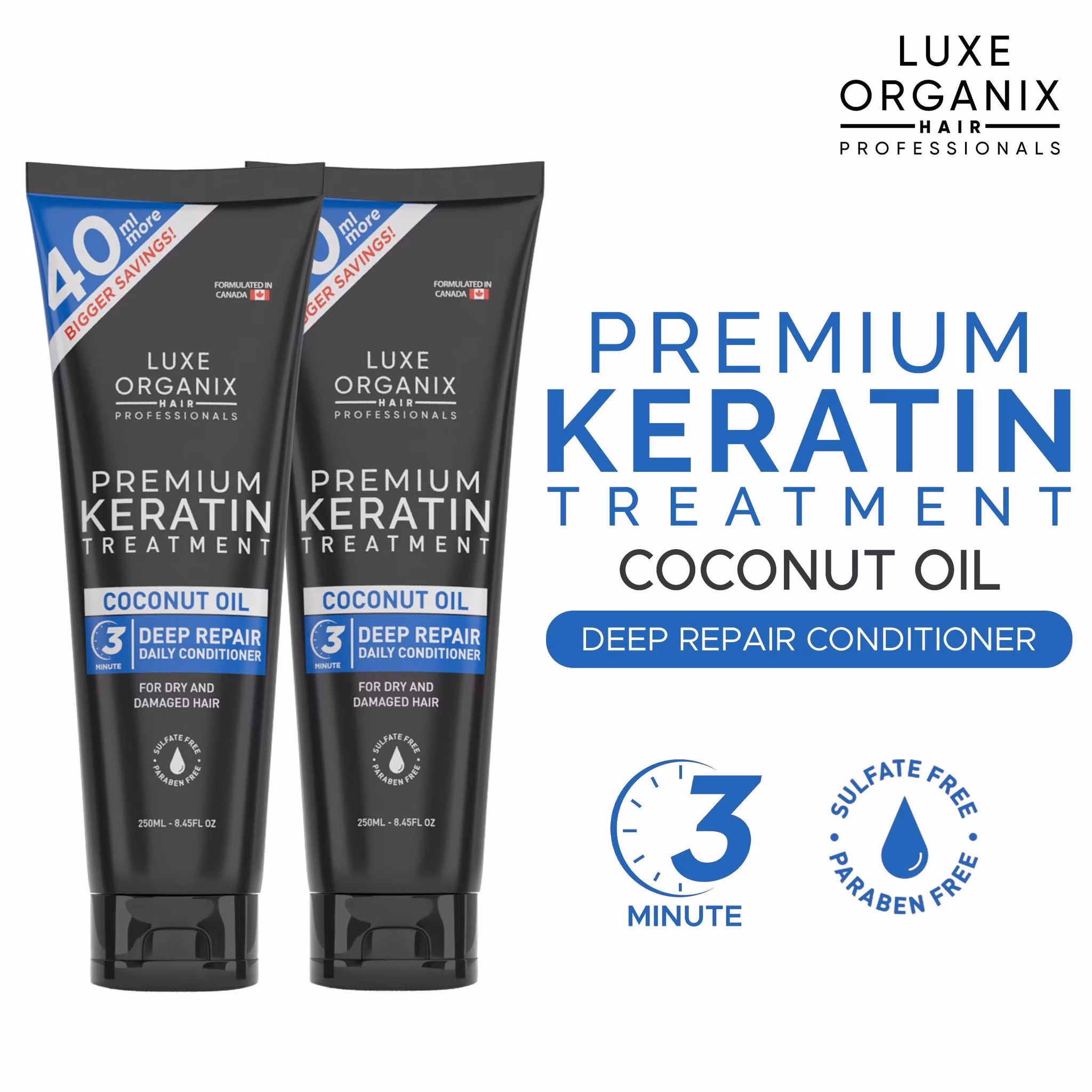 Luxe Organix Premium Keratin Treatment Coconut Oil Deep Repair Conditioner 210ml x2