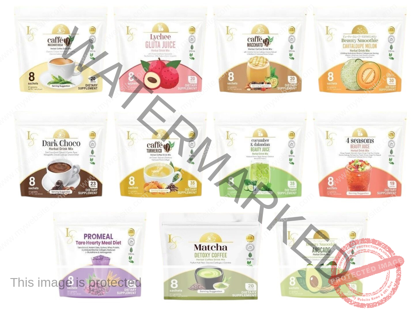 | Flavour | CAFFE MACCHIATO, CAFFE TURMERICO, BEAUTY JUICE – FOUR (4) SEASONS, BEAUTY JUICE – CUCUMBER DALANDAN, BEAUTY SMOOTHIE – CANTALOUPE MELON, GOJI BERRY, DARK CHOCO, PROMEAL TARO HEARTY MEAL DIET, MATCHA LATTE, LUXE KIDS CHOCOLATE MILK, CAFFE MACCHIATO DECAF |