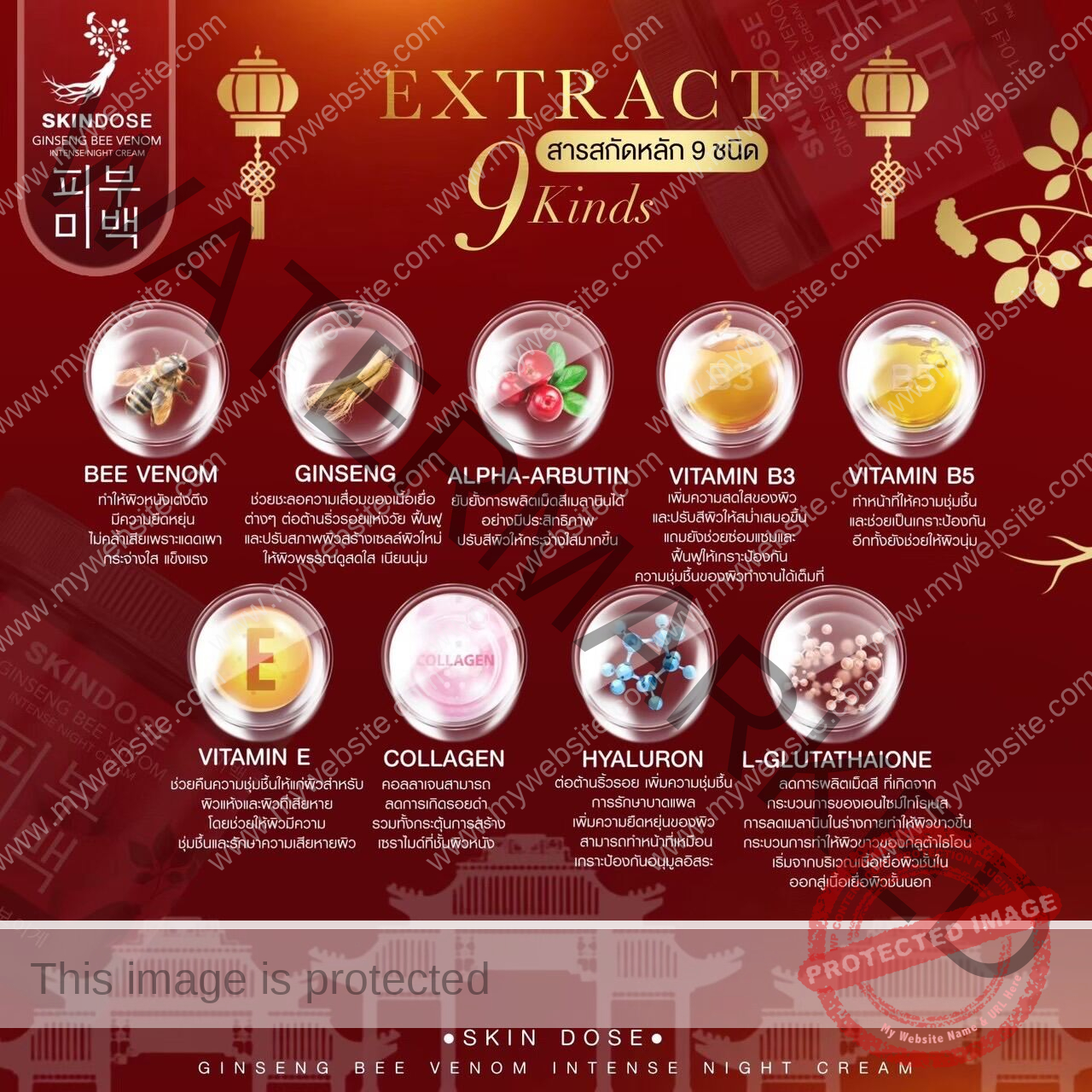 Skin Dose Ginseng Bee Venom Intense Night Cream delivers breakthrough overnight skin transformation combining rare bee venom extract with precious Korean ginseng for luminous white skin aura with beautiful pink glow.