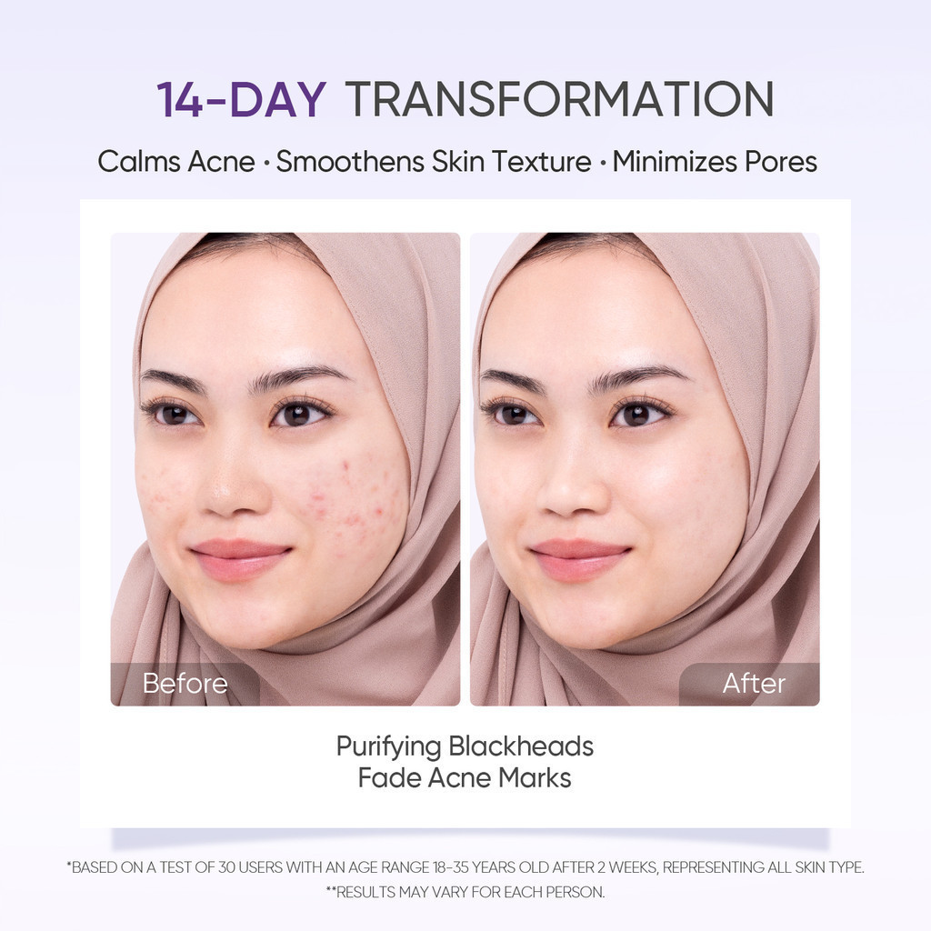 Exfoliating serum with the main ingredients Lactic Acid, Succinic Acid and Pink Grapefruit Acid, provides maximum but gentle results for treating acne-prone, oily and textured skin. Using Three French Patented Ingredients (Evermat™, Pixalia®, Prodizia™) which are plant-based, work on the surface of the pores, significantly reducing the appearance of pores and suppressing excess sebum, so that the skin looks smoother and brighter. Triple Action in 3 Times Usage, soothes acne, smooths skin texture and makes skin glow. Formulated for all skin types, especially oily and acne-prone skin